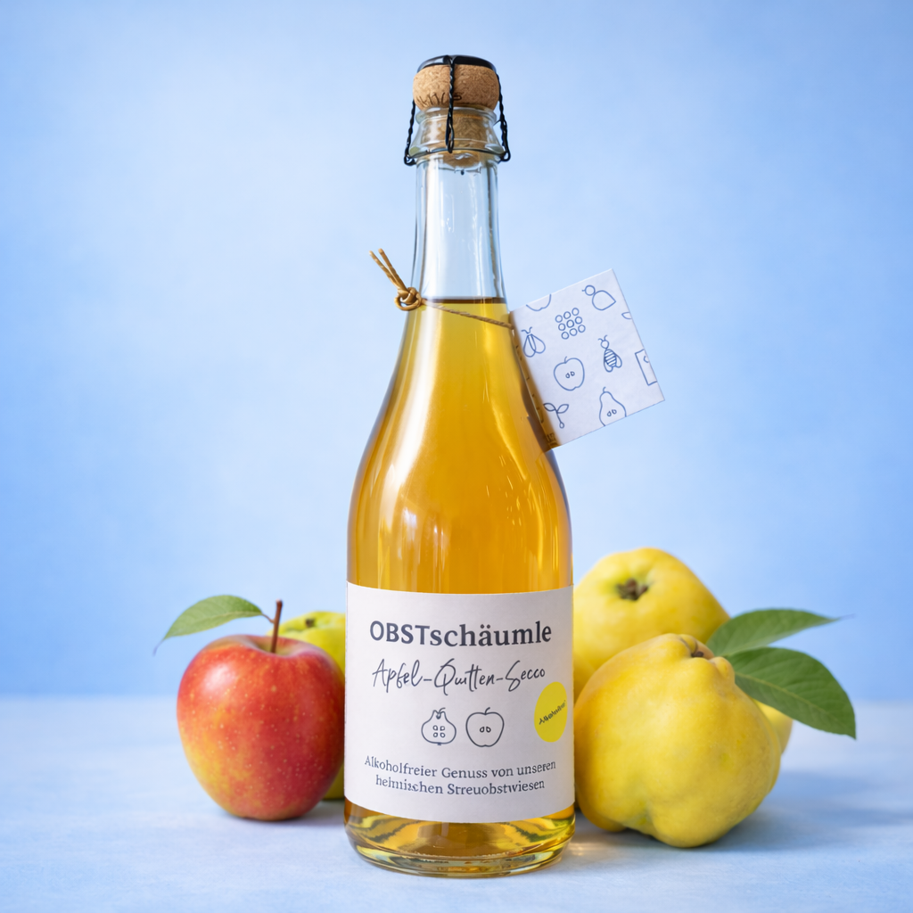Ganz neu mit der Ernte 2025: Unser leckerer alkoholfreier Apfel-Quitten-Secco